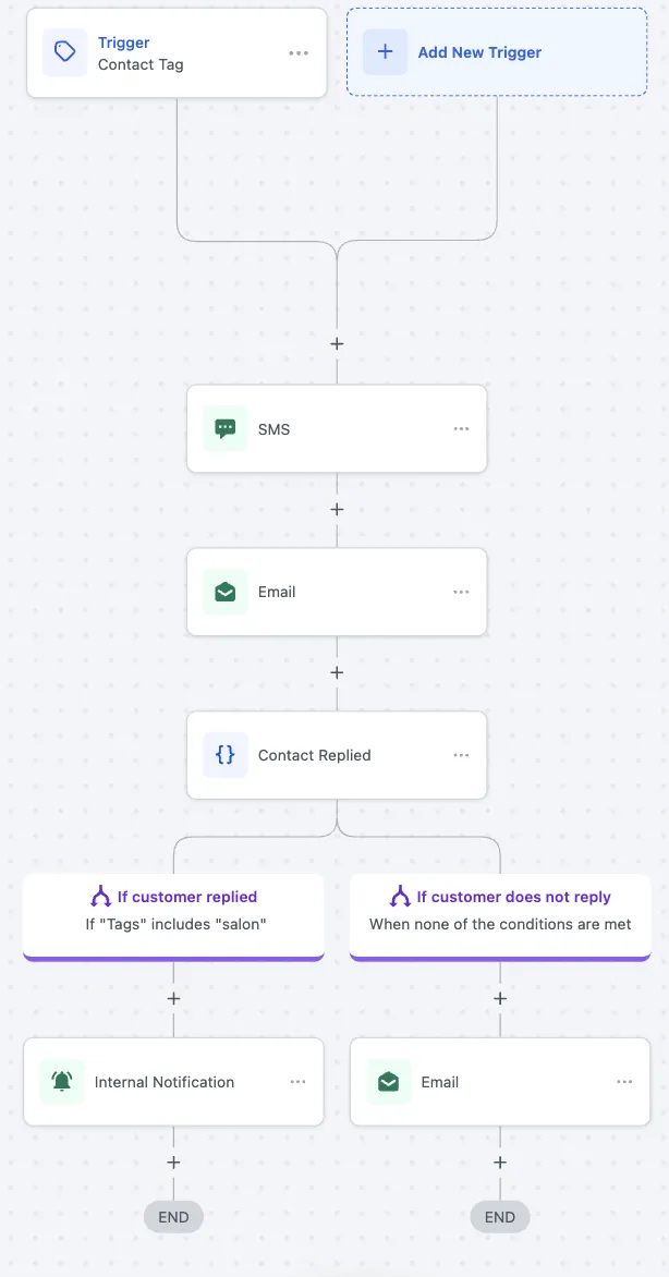 Automatically follow up with leads across SMS, email, and social channels to start conversations and move prospects toward booking.